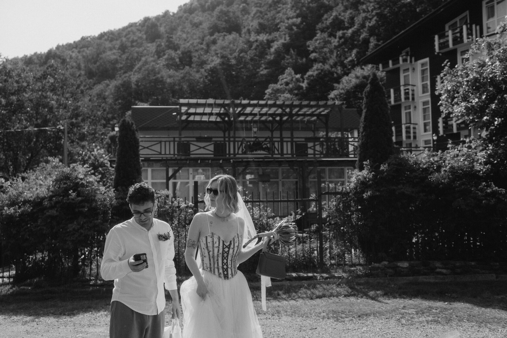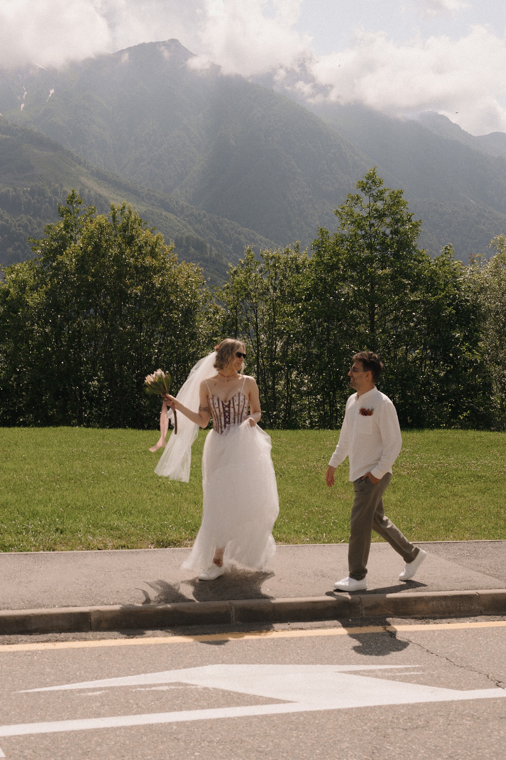 Когда-то на их второй встрече Оля спросила Влада: "А поехали жить в Сочи?" И он ответил: "А поехали!" И вот они уже хотят устроить свадьбу-вечеринку для самых близких на зеленой лужайке в Красной Поляне. Прекрасная прогулка в горах, красивый декор, вкусные закуски, тачка с пивом, о которой мечтал жених, а главное все самые близкие рядом, пара счастлива. И вот на церемонии в конце своей клятвы Оля снова спрашивает Влада "Поехали?". И он, конечно, снова говорит: "Поехали!". Но теперь уже в путешествие посерьезнее, которое начинается с такой прекрасной свадьбы.